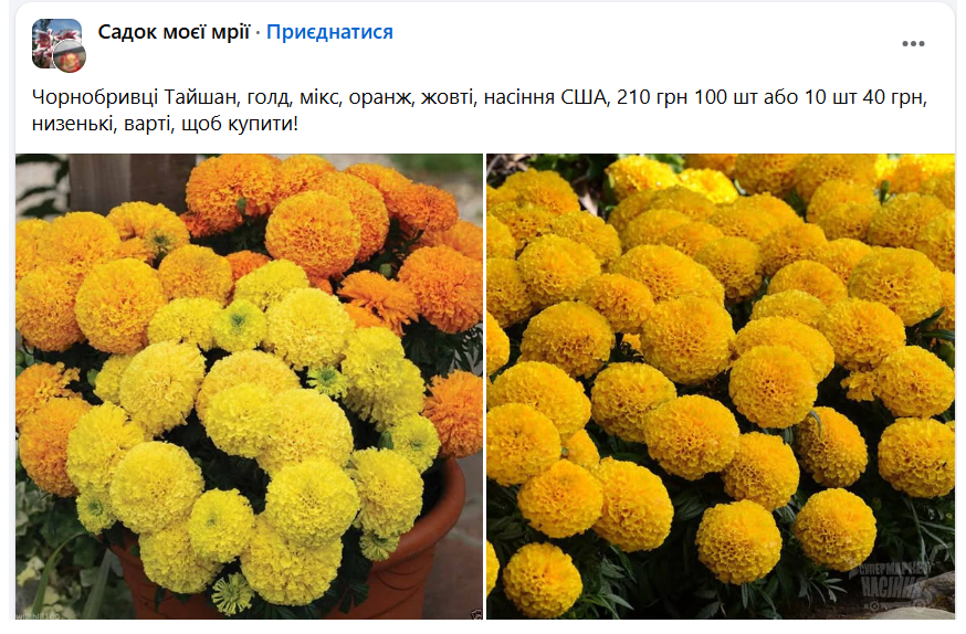 В соцсетях, к слову, это распространенная практика — чернобривцы продают по хорошим ценам в разном виде: и свежими, и сухими и семенами. Также из них делают соль или эфирные масла и продают в сети.