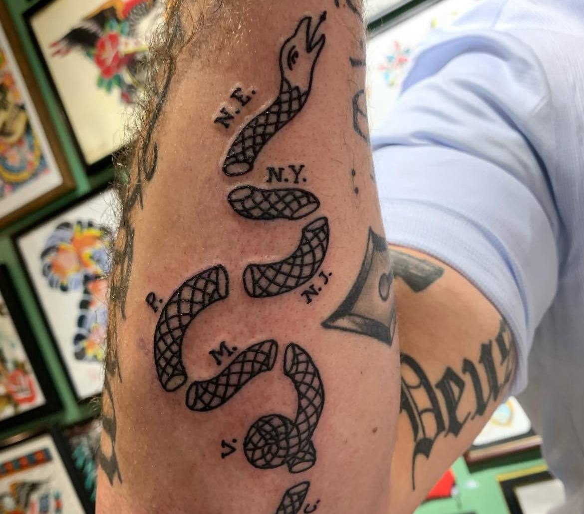 Министр обороны США имеет тату с изображением змеи Join or Die на предплечье. Оно олицетворяло колониальный альянс, созданный колонистами в Америке.
