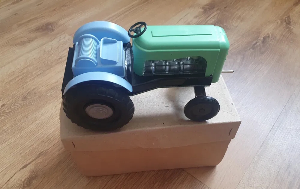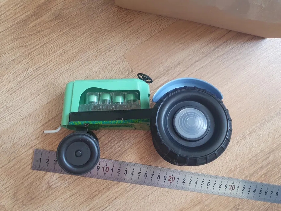 В свое "оправдание" владелец лота отмечает, что, несмотря на почтенный возраст, трактор практически новый и умеет издавать звук работы двигателя, если крутить соответствующую ручку.