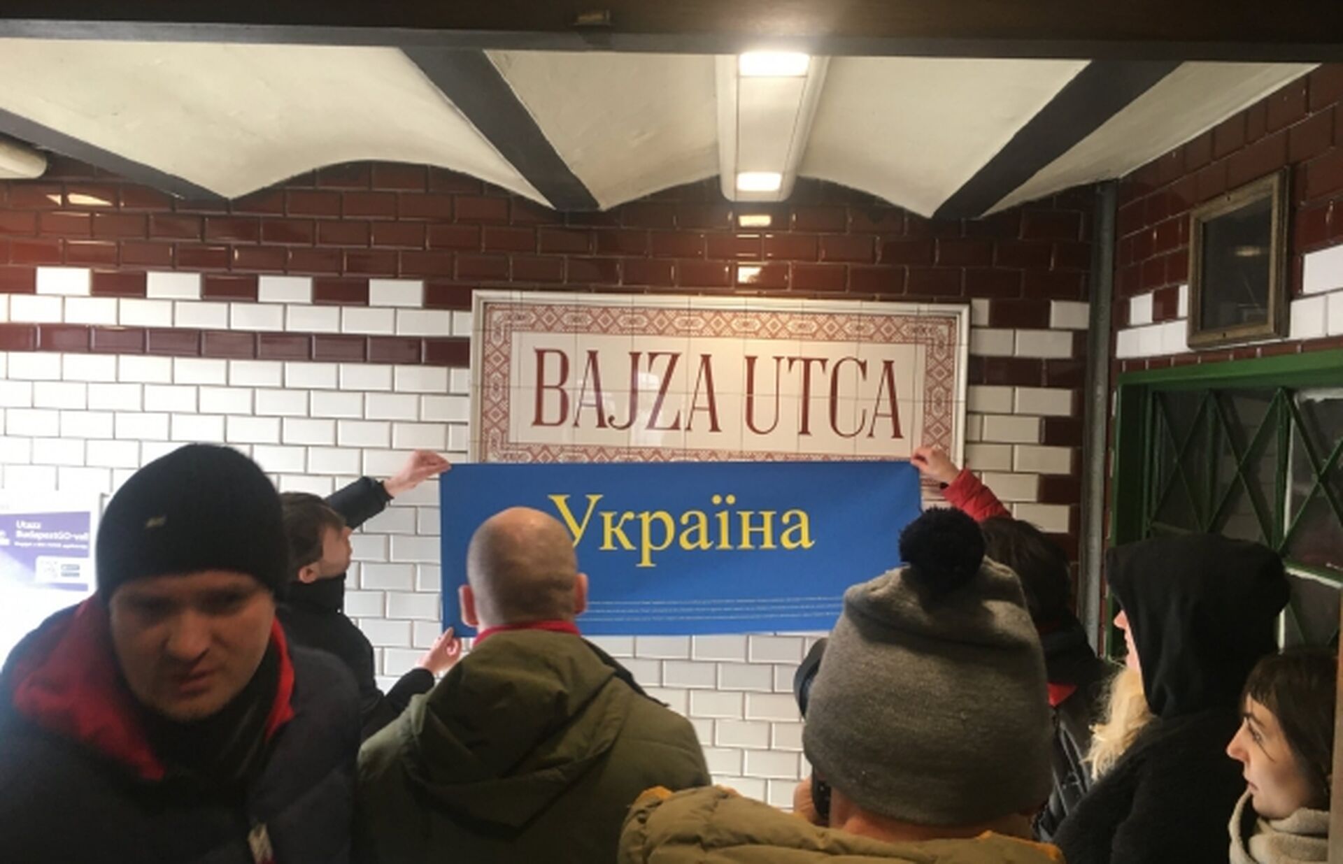 В столице Венгрии группа местных художников временно изменила название станции метро "Bajza utca" 1-й линии на "Украина". Станция расположена неподалеку от Посольства России.