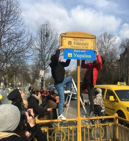 Мэр Будапешта Гергей Карачонь, который находится в оппозиции к премьер-министру Виктору Орбану, заявил, что знал об акции. По его словам, работники городской мэрии не будут снимать таблички, пока в Украине продолжаются боевые действия.