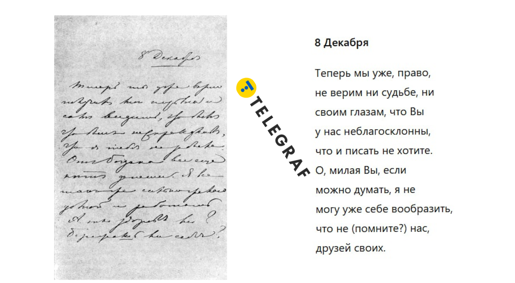 Мы нашли письма Марка Вовчка Дмитрию Писареву. Например, в этом речь идет о печали и тревоге из-за молчания адресата, то есть человек, который пишет, сокрушается, что не получает ответов и боится, что его забыли или разлюбили. В расшифровке помог ChatGPT.