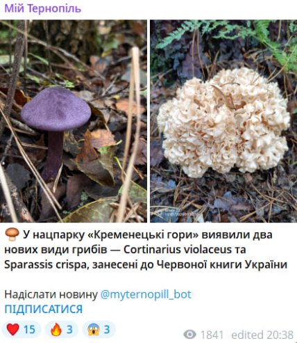 Сразу два редких гриба растут на Тернопольщине: один фиолетовый, а другой - как капуста (фото)