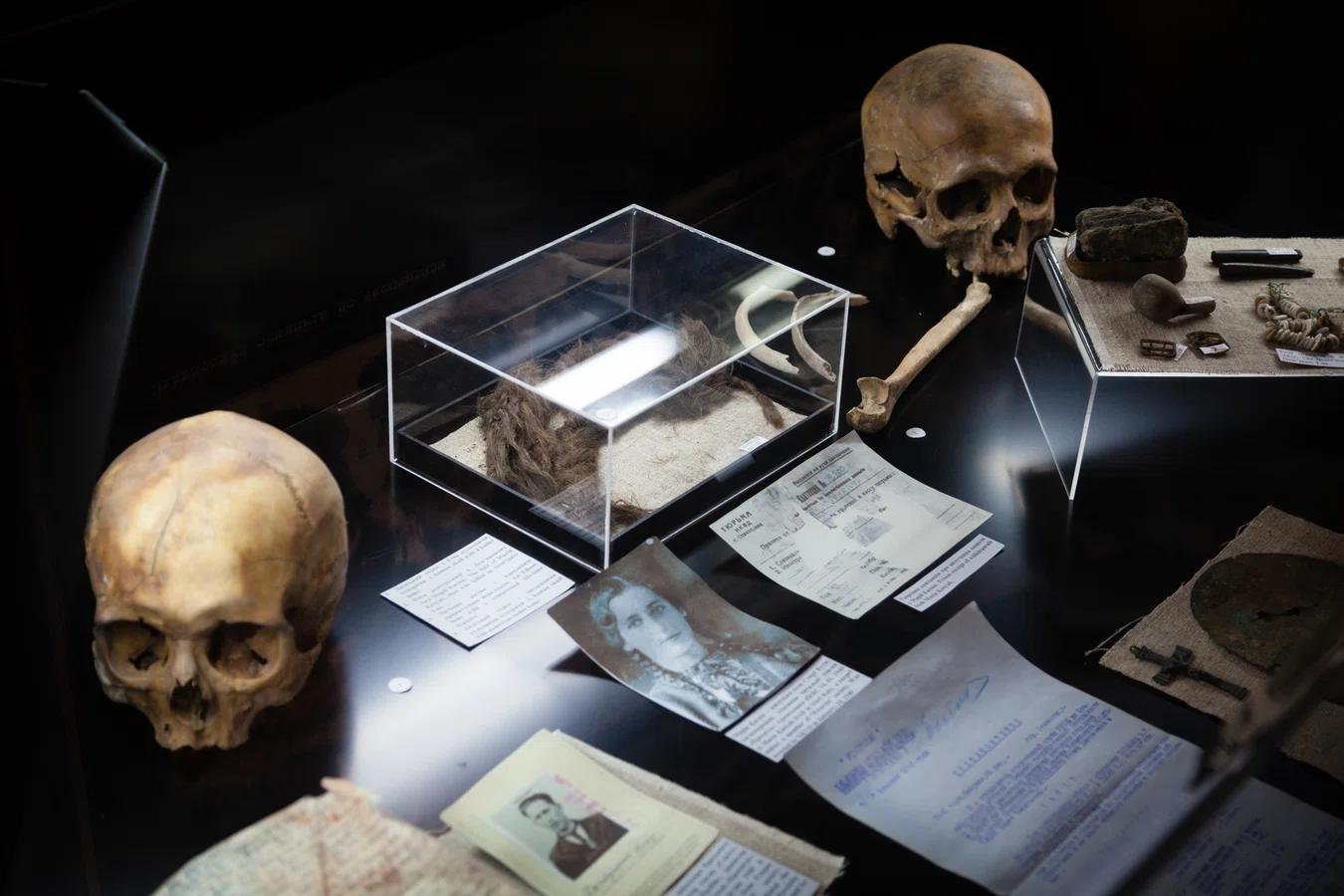 Среди находок есть одежда, обувь, расчески, очки, украшения и другие предметы обихода. Их хранят в музее при храме, построенном на горе 1998 года, с мемориальной табличкой "Демьянов Лаз". Предметы расположены и подписаны так, как в обычных музейных экспозициях, и свидетельствуют о повседневной жизни погибших. Среди экспонатов можно увидеть ремешки жертв как признак того, что их даже не успевали обыскивать перед казнью.
