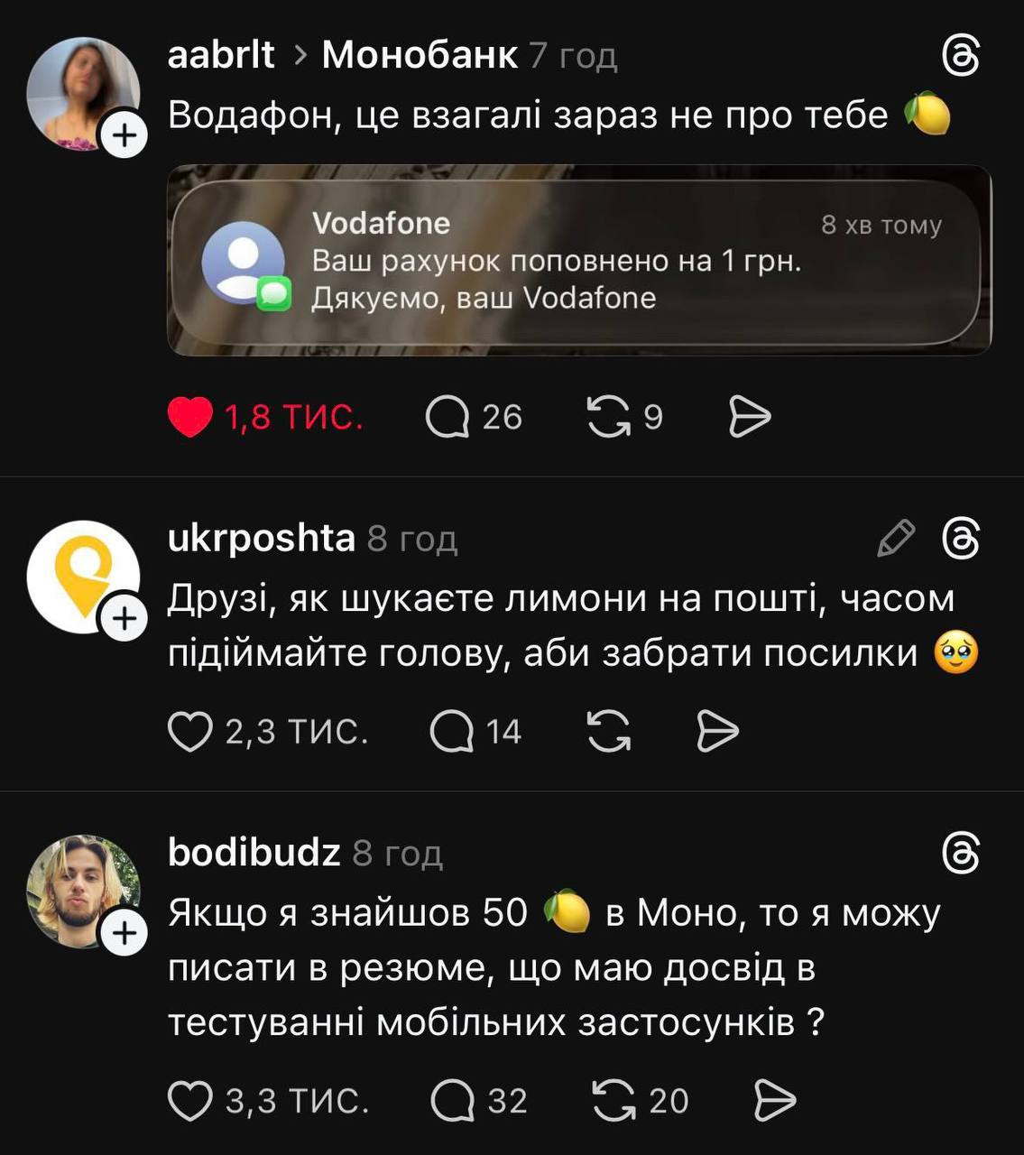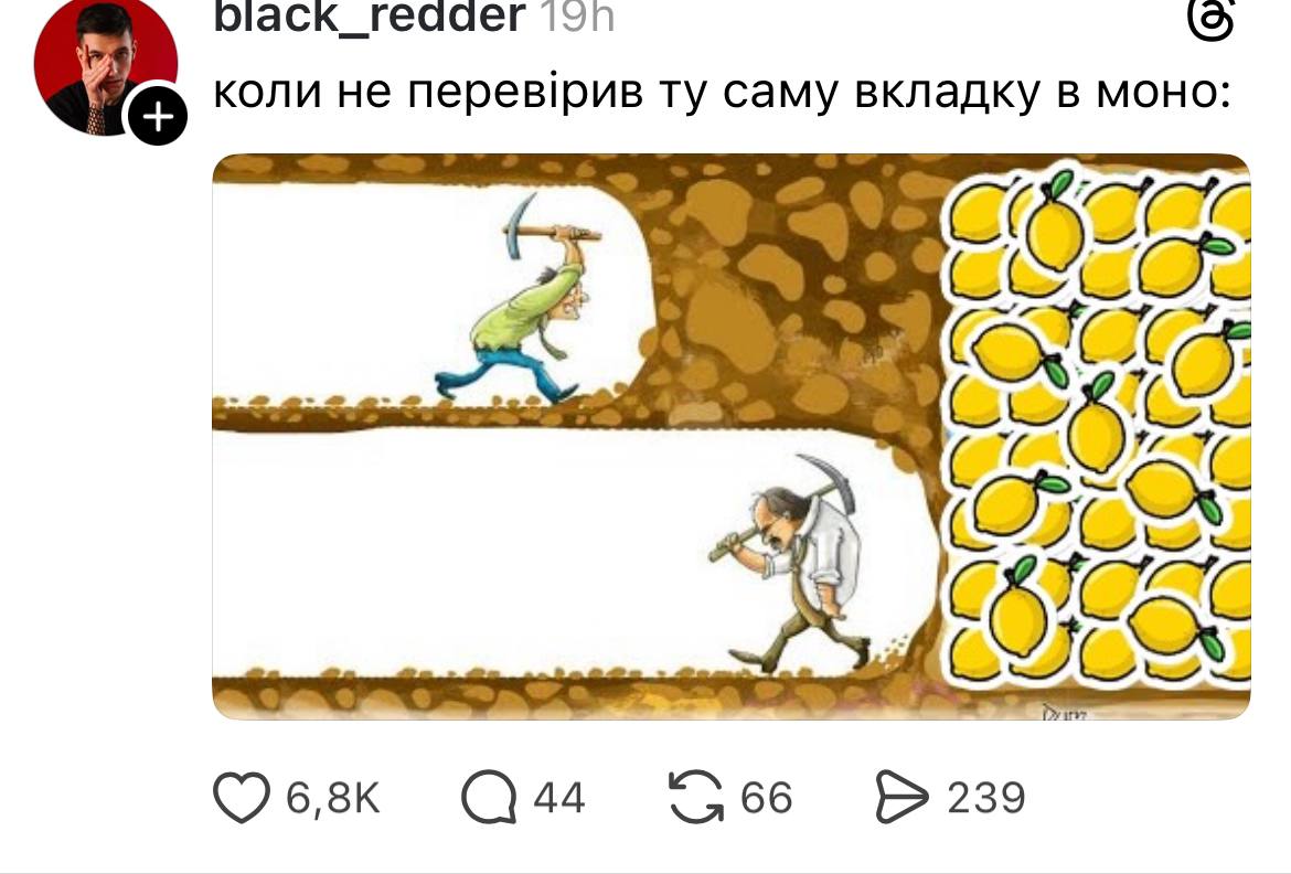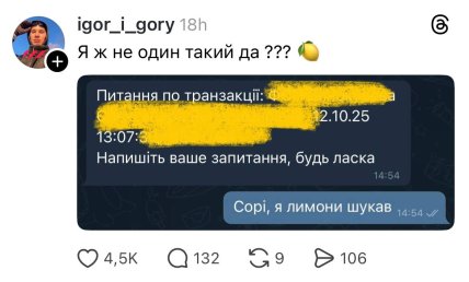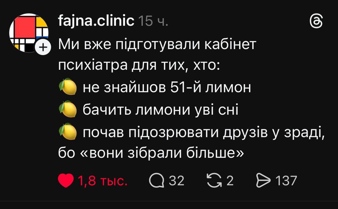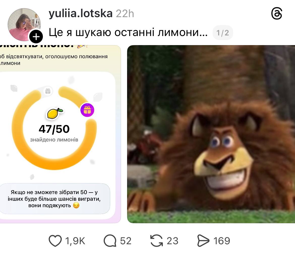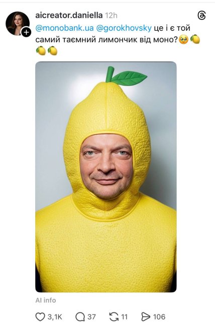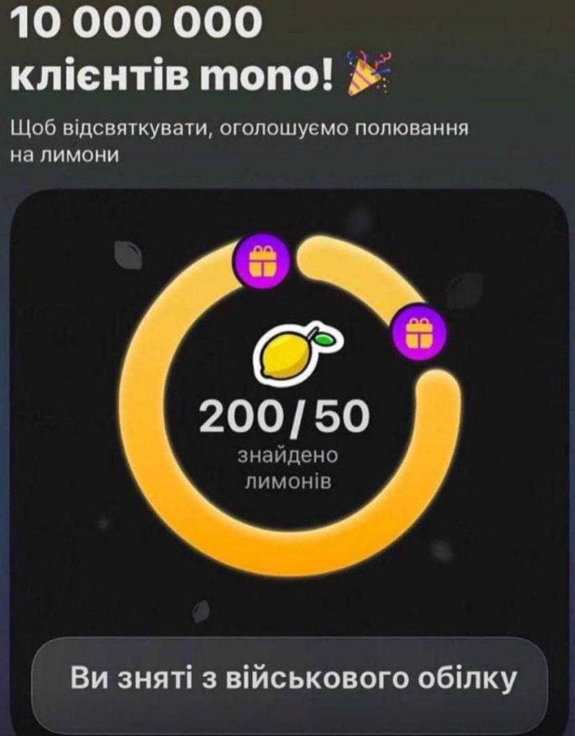 Не обошел тему лимонов и совладелец "Монобанка" Олег Гороховский, который поддерживал ажиотаж своими сообщениями и тематическими мемами. А также были шутки и о том, что у блогера Ксюши Манекен мошенники украли более 6 миллионов гривен в "Монобанке" за день до запуска игры о лимонах.