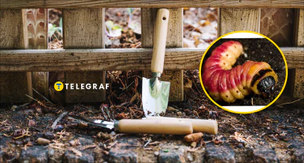 В Украине похолодало и насекомые устраиваются на зимовку. Украинка нашла в земле огромную малиновую гусеницу, которая вредит деревьям.