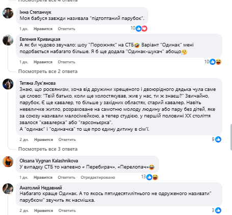 Многие в комментариях предложили для романтического шоу и другие варианты, более смешные: "Перебирач", "Одинак-шукач", "Нежонатий".