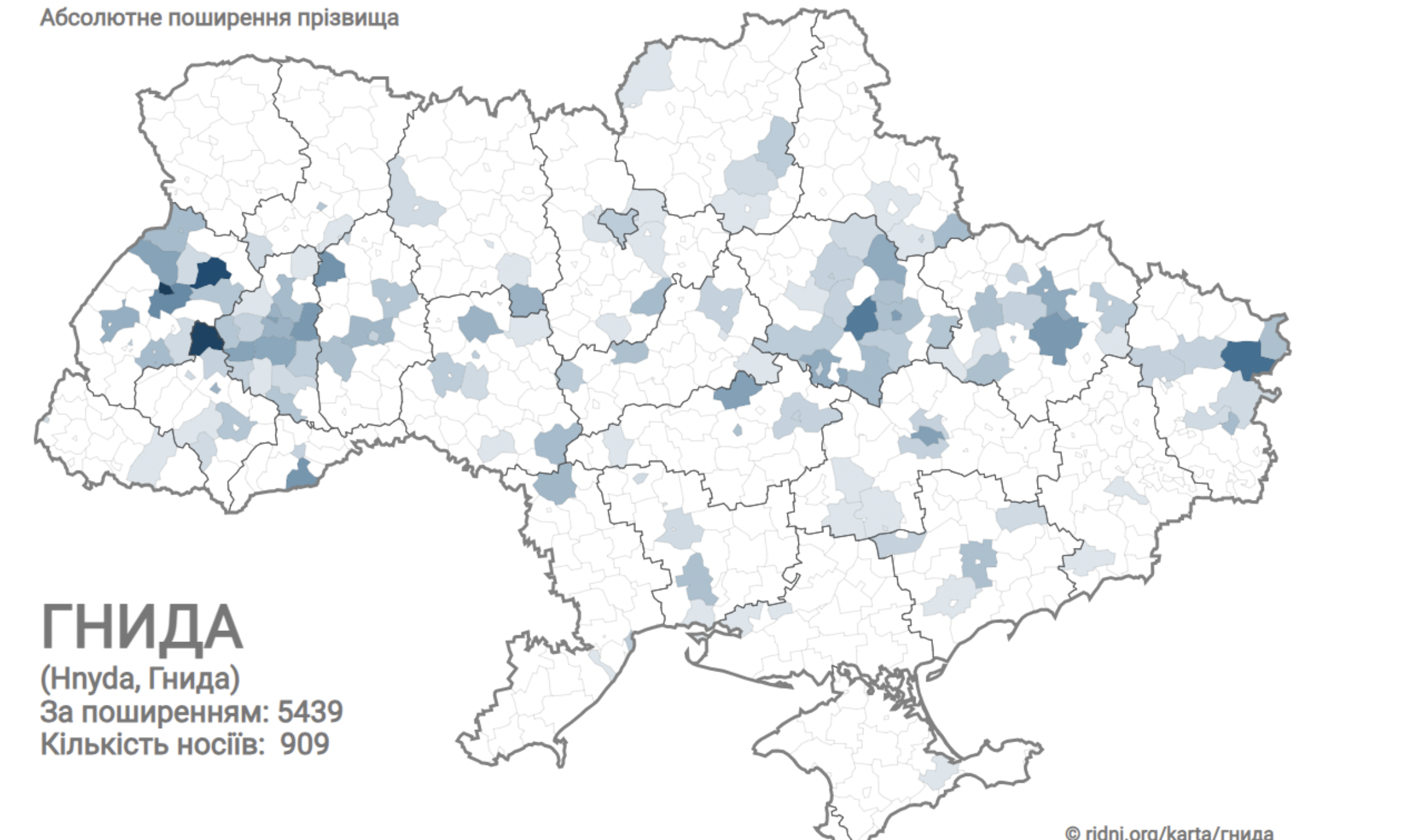 Гнида, Гнидаш, Гнідаш, Гніда, Гнідан — эти фамилии когда-то могли дать никчемным людям, которые не приносили пользы. На сегодняшний день в Украине есть больше тысячи их носителей.