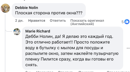 В комментариях автор добавила, что клеить следует гладкой стороной к стеклу. Такой способ не портит стекло и не оставляет следов на нем. Не обязательно заклеивать все окно, можно только определенную часть, но тогда эффект снизится.