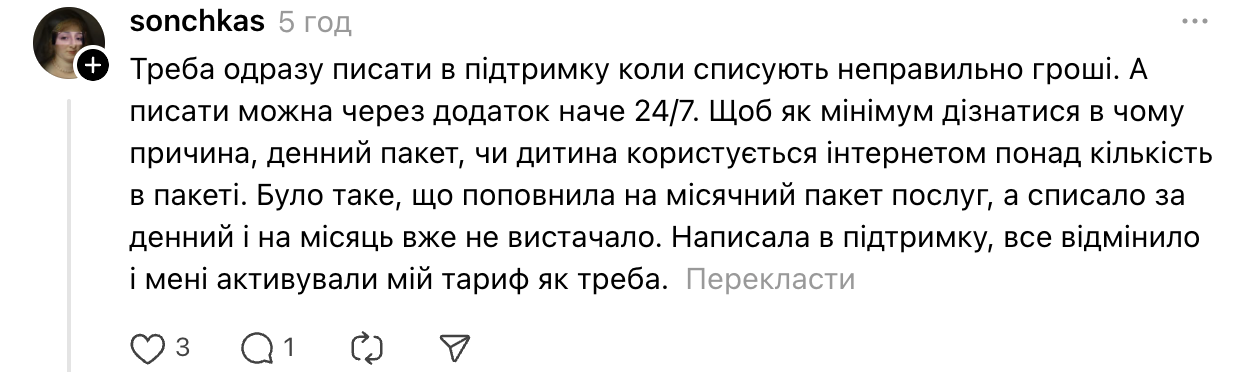 По словам женщины, она собиралась пополнить мобильный телефон и увидела акционное предложение от мобильного оператора. Vodafone предлагал скидку на 50%, если пополнить счет прямо сейчас. Женщина так и сделала, но тариф не подключился, а само предложение исчезло. Более того, обратиться в поддержку Валерия не могла из-за позднего времени (22:30), а в чат-бот не писала.