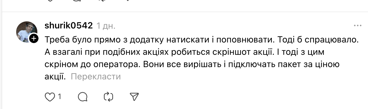 Однако были и полезные советы, ведь один из пользователей подчеркнул, что, чтобы акция сработала, телефон нужно было пополнить через приложение. Некоторые добавили, что даже без уведомления женщина может обратиться к оператору и он должен подключить акционный пакет.