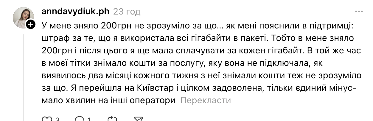 В комментариях многие делились своим негативным опытом пользования Vodafone. Некоторые рассказывали, о странном списании денег, подключении услуг, которые не заказывали, или даже проблемах со счетчиком использования интернета.