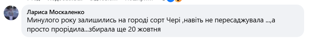 В прошлом году на огороде остались сорт Чери, даже не пересаживала, а просто проредила. Собирала еще 20 октября, — рассказала одна из участниц обсуждения