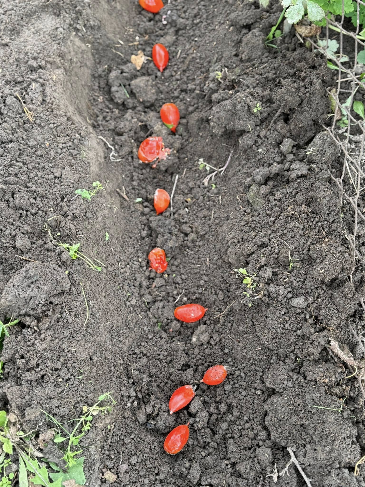 Об опыте выращивания помидоров необычным способом рассказала член Facebook-группы "Затятий дачник". Много усилий осенью он не требует: нужно разложить помидоры в борозду и присыпать землей. Можно брать падалицу, примятые, примороженные.