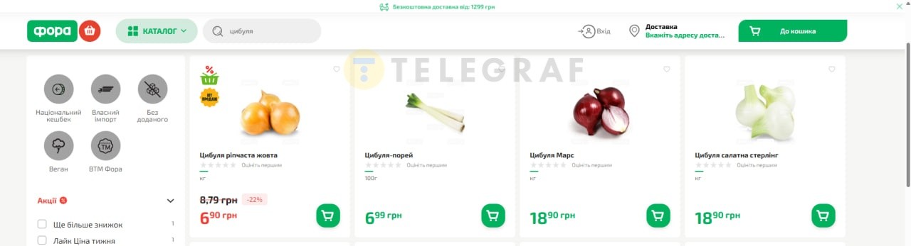 Ценники на лук в Фора