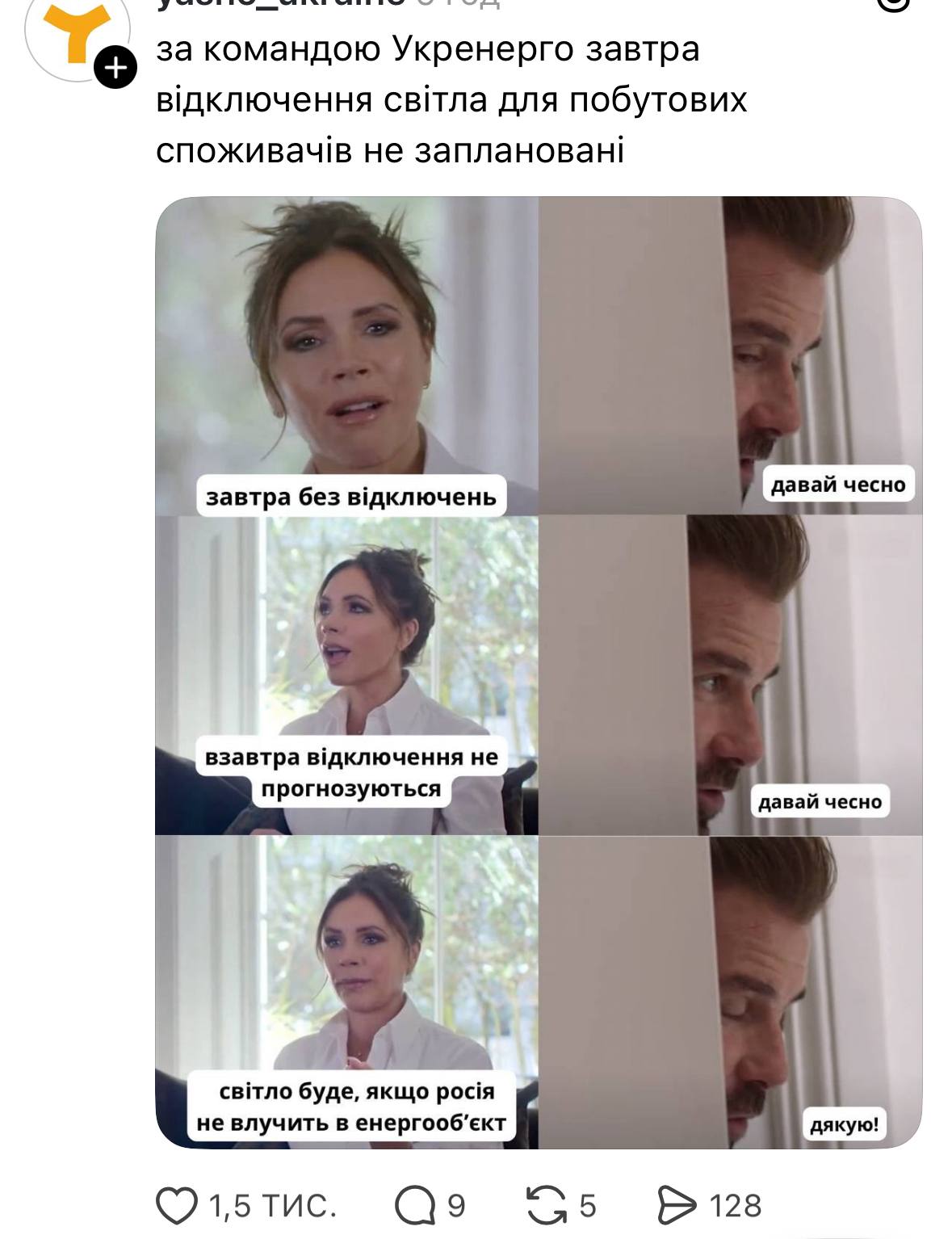Это очень истощает и иногда нервирует, однако украинцы не только запасаются и применяют все, что помогает пережить блэкауты, но также шутят. Юмор – хороший способ помочь себе и другим в трудные времена. "Телеграф" собрал самые смешные шутки об отключениях света в Украине.