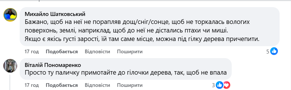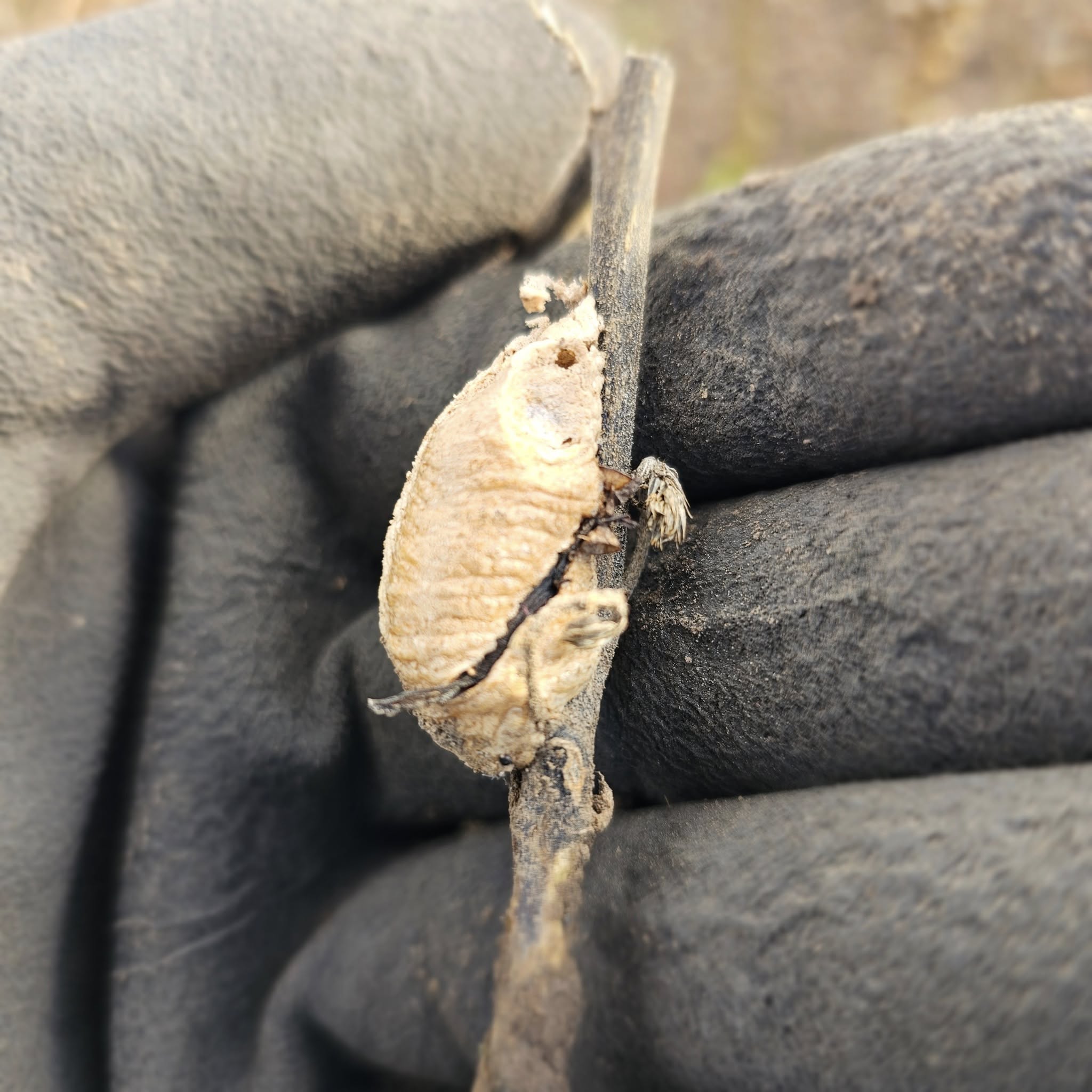 Ей посоветовали примотать палочку с оотекой на ветку. Желательно оградить ее от дождя и снега. Также следует выбрать такое место, где до оотеки не доберутся мыши и птицы.