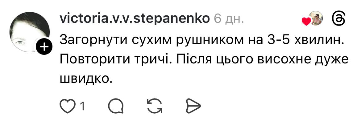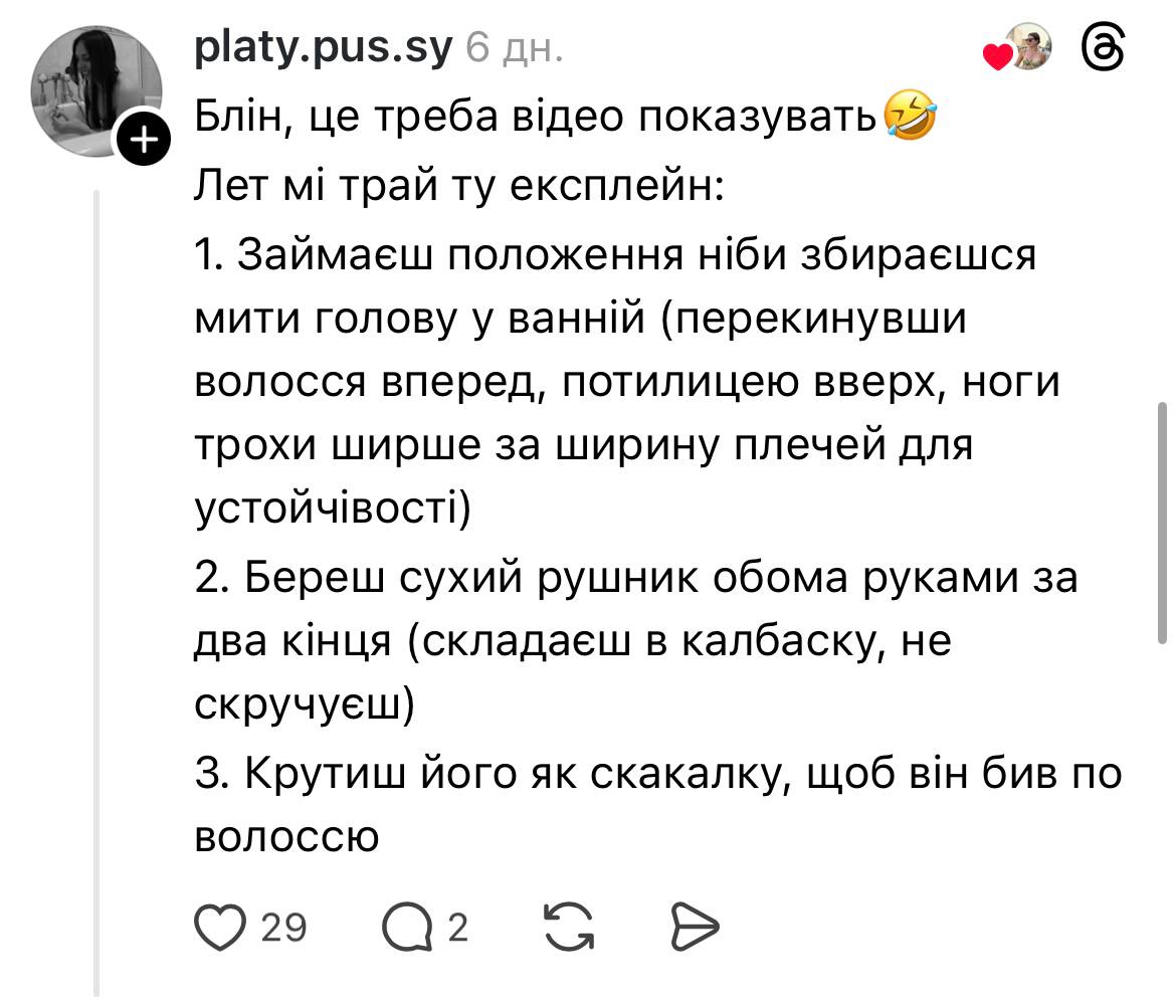Можно крутить головой перед собой, чтобы высушить волосы, скриншот из Threads