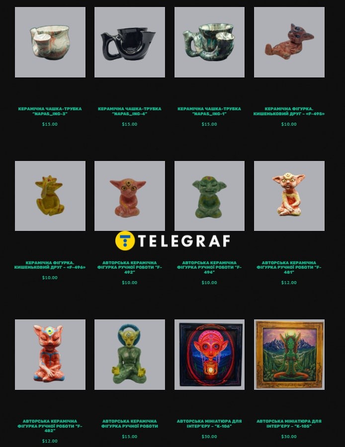 Наибольшей популярностью пользуются керамические трубки и чашки для курения, а также миниатюрные фигурки и полотна, созданные флуоресцентными акриловыми красками. Цены на эти товары колеблются от 7 до 35 долларов — примерно 300–1500 гривен, если курс доллара будет составлять 42 гривны.