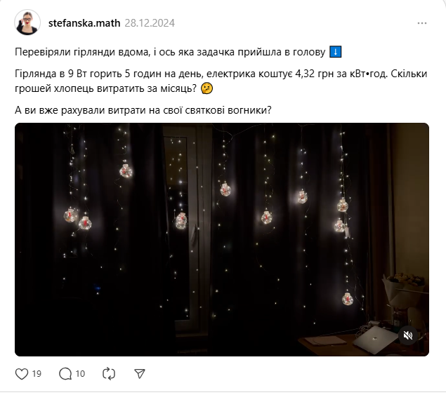 В социальной сети Threads подсчитали, сколько света "намотает" гирлянда в 9 Вт, если включать ее каждый день. Украинцы подсчитали стоимость расходов в месяц.