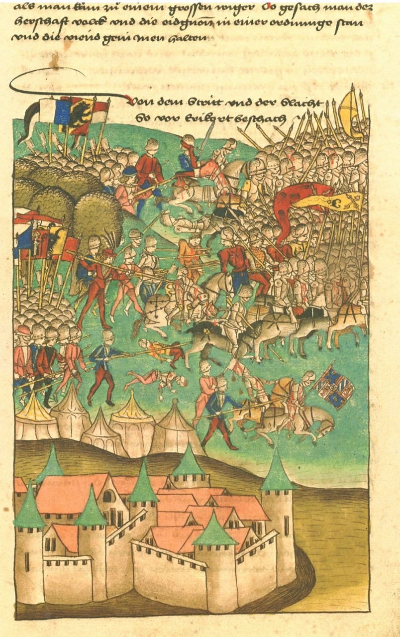 Герцогство Бургундия первой половины XV века стало могущественным государством. Именно бургундцы во время Столетней войны взяли в плен легендарную Жанну д’Арк и передали англичанам, которые ее казнили. Воинственный герцог, владения которого были зажаты между Французским королевством и Священной римской империей германской нации, постоянно увеличивал свои владения и грезил королевским титулом. После примирения Австрии и Швейцарской конфедерации король Франции Людовик XI сумел подкупом создать союз еще недавно непримиримых врагов – швейцарцев, австрийцев герцога Сигизмунда Тирольского из рода Габсбургов, а также эльзасцев, которые восстали против жестокого правления бургундцев.