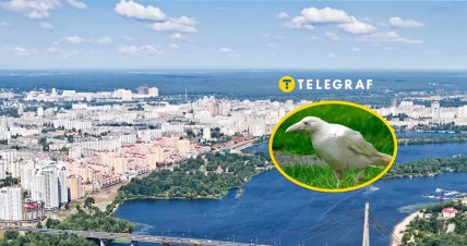 Видео редкой птицы распространили в телеграм-канале "Твой Киев". Белую ворону заметили в районе Оболони.