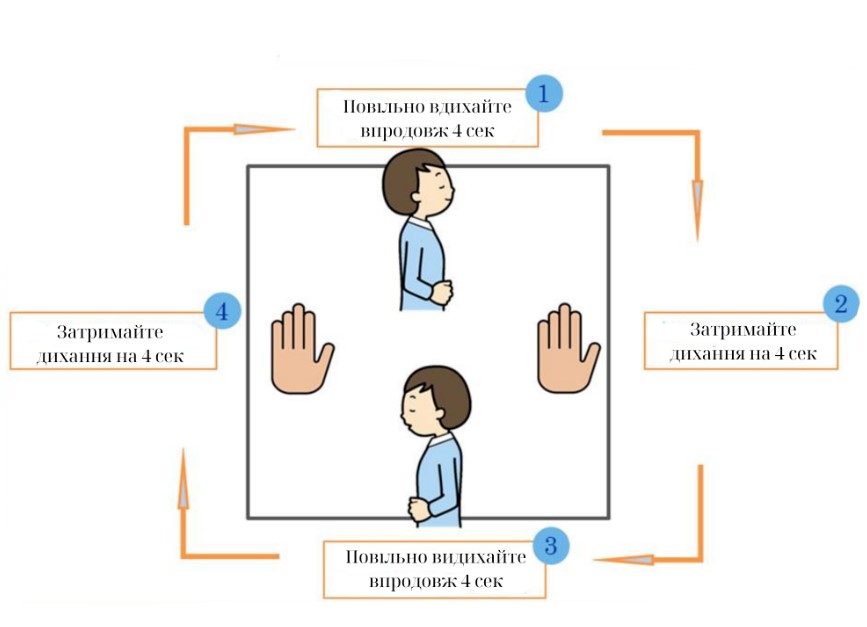- Выполняйте дыхательные упражнения типа "дыхания по квадрату", по схеме "7-8-9" и другие. Это поможет расслабить тело, как следствие ответит нервная система, ведь получит сигнал – все хорошо, я в безопасности.