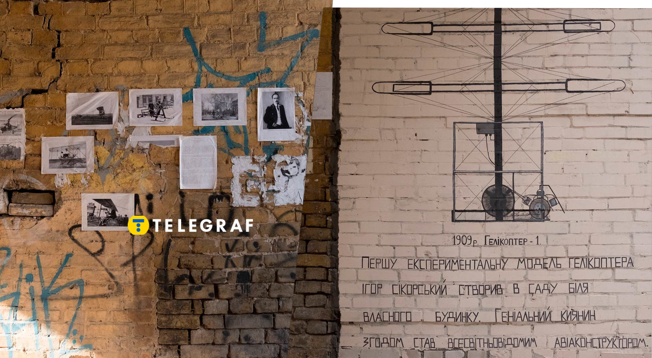 В доме на Ярославовом Валу Игорь Сикорский создал первый в мире вертолет, однако сейчас его двор пришел в упадок и напоминает свалку. О его проживании напоминают только надписи, фото и таблички на стенах.