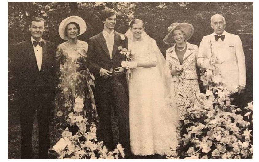 22 июня 1974 года Брижит впервые вышла замуж за банкира Андре-Луи Озьера, от которого она родила троих детей. На фото, представленное ниже, мы можем видеть, как выглядит жена Макрона в молодости. На черно-белом снимке она запечатлена в красивом белом свадебном платье. Тогда молодожены выглядели счастливыми.