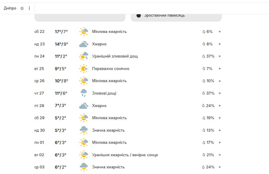 По данным Weather.com, в Днепре в конце ноября будет преобладать облачная погода с прояснениями, только 27 ноября, пройдет дождь. А с 28 ноября в городе похолодает, температура снизится до +7…+5 градусов.