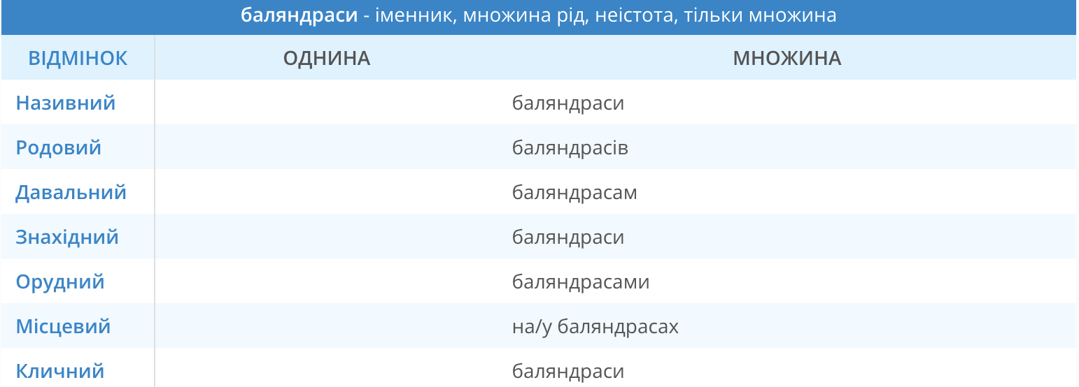 - "Хазяйка кишки порве од її баляндрасів". (Г. Квітка-Основ’яненко)
