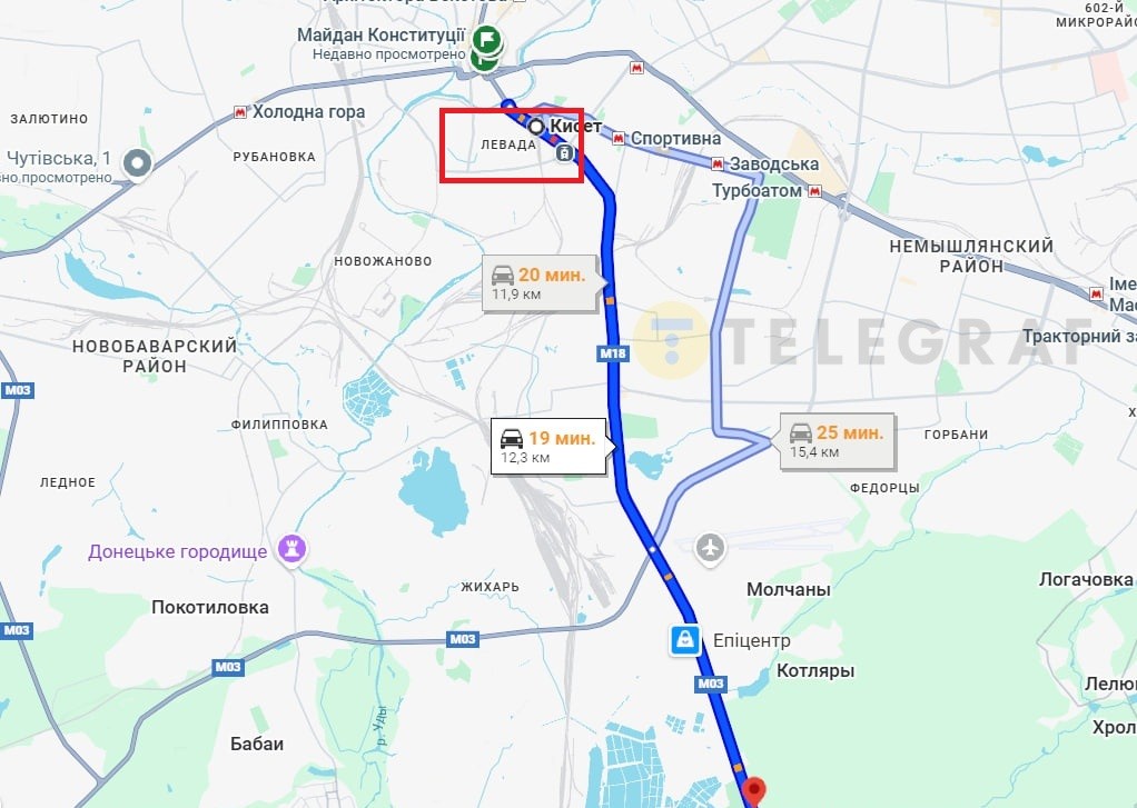 Станция метро "Левада" на карте