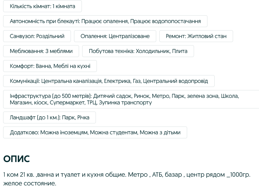 Комната находится в старом кирпичном доме. На расстоянии до 500 метров расположены детский сад и школа, рынок, станция подземки, супермаркет АТБ и торгово-развлекательный центр, а также парк и зеленая зона.