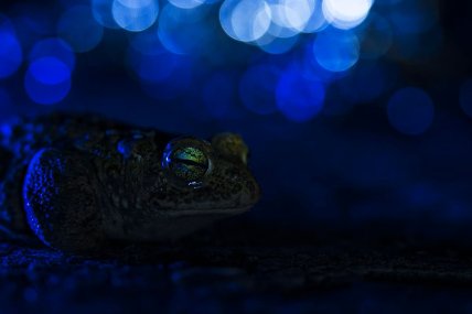 В номинации "Животные в городской среде" отметили, в частности, кадр пролетающей над дорогой в Калифорнии серой бородатой совы, где вдали видны фары автомобиля, а также ночной портрет жабы-натарджака в Берлине.