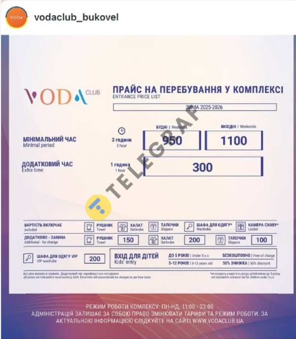 Аквапарк "MAVKA" предлагает посещение по ценам от 700 до 3 200 гривен — от 2 часов за детский билет до полного дня релакса.