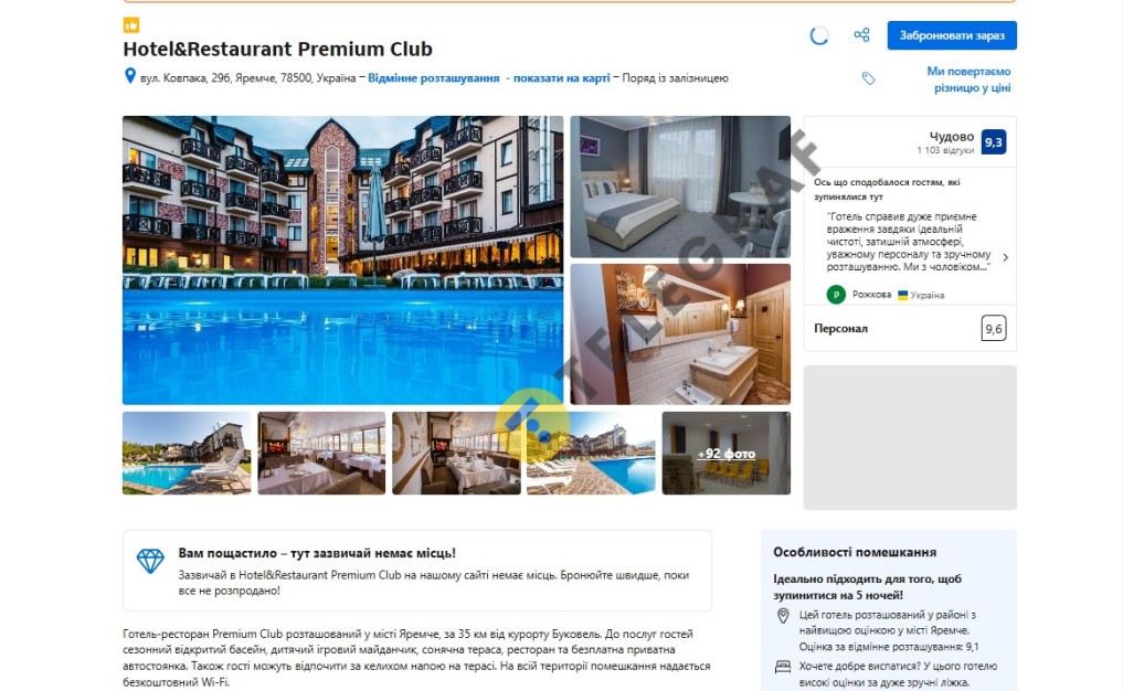 Отель-ресторан Premium Club в Яремче расположен в 35 километрах от Буковеля. Пять ночей здесь обойдутся минимум в 26 900 гривен, то есть около 5 380 гривен за ночь. В заведении организуют праздничный новогодний праздник с 22:00 до 03:00 с ведущим, диджеем, интерактивами и праздничным меню с алкогольными напитками. Дополнительная стоимость участия, как рассказали представители гостиницы, — 4 800 гривен за взрослого человека, 2 800 гривен за ребенка 10-18 лет и 1 800 гривен за ребенка 3-9 лет.