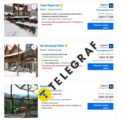 Отель Tsvit Paporoti предлагает пять ночей за 17 тысяч гривен, что составляет 3400 гривен в сутки. On Dovbush Path в Яремче стоит 14 100 гривен за весь период, то есть 2 820 гривен за ночь. Отель Goverla, также в Яремче, обойдется в 16 тысяч гривен, что составляет 3200 гривен в сутки.
