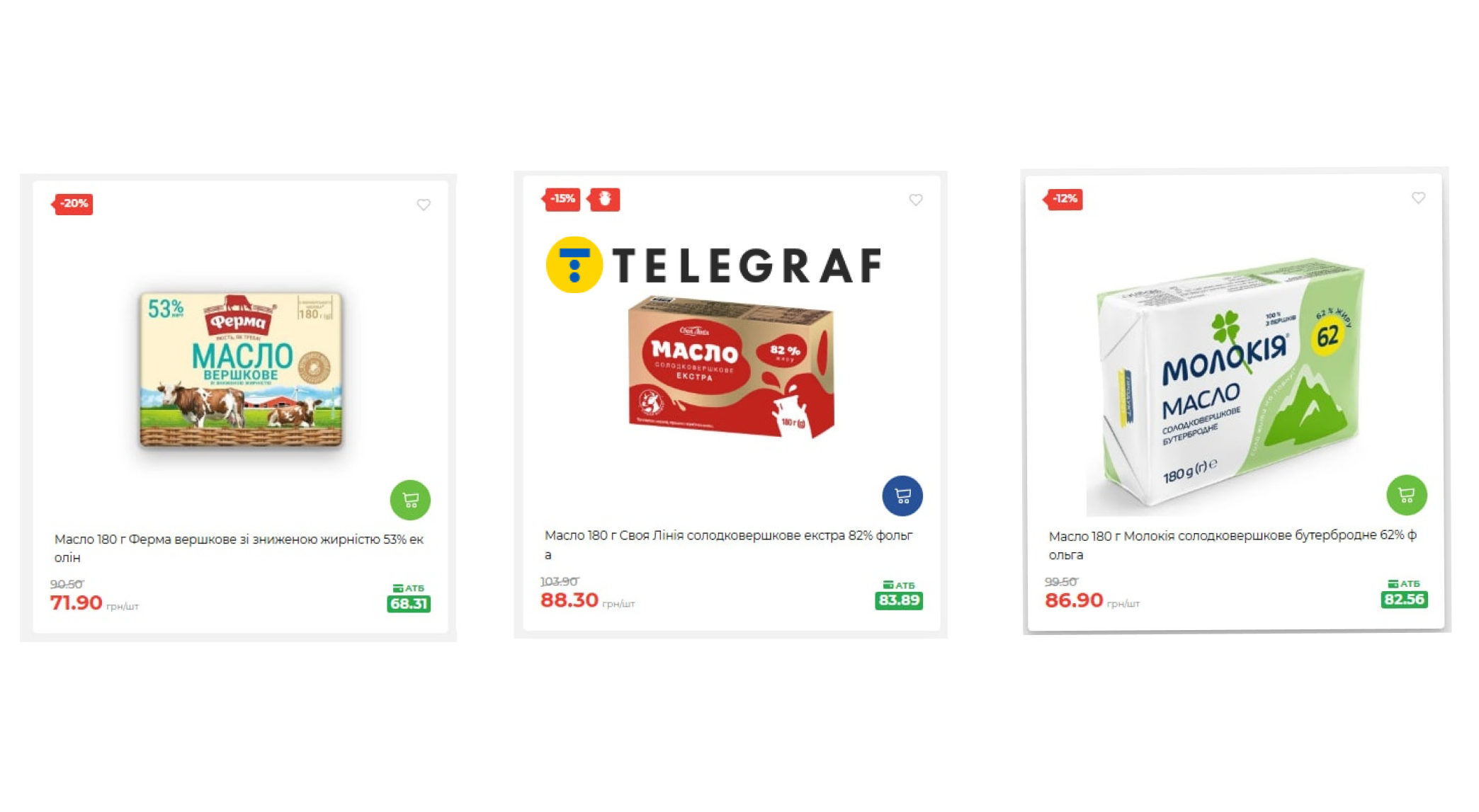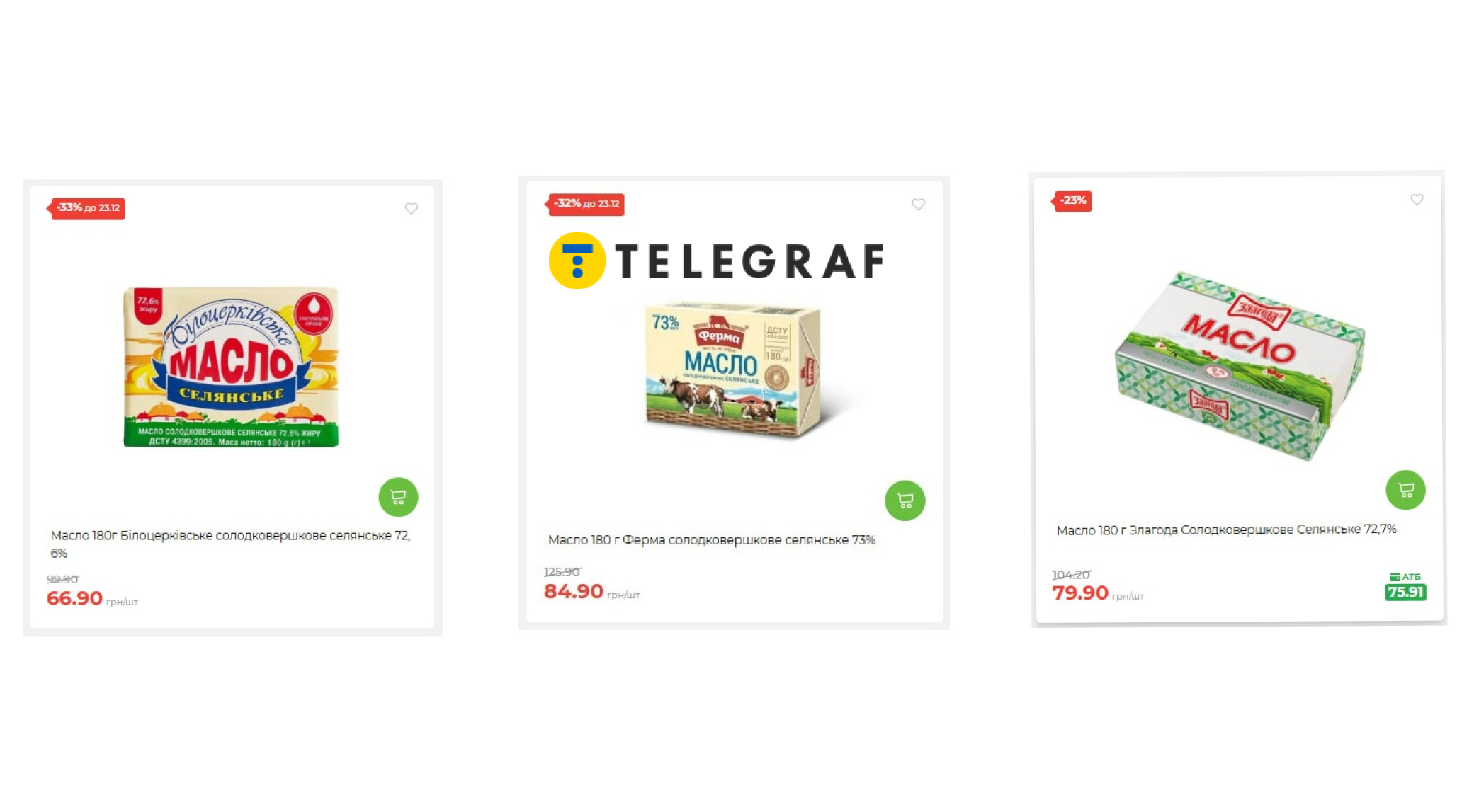 - Масло 180 г Белоцерковское сладкосливочное крестьянское 72,6% — по акции 66,90 гривны, а раньше стоило 99,90 гривны;