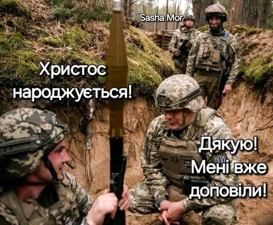 "Телеграф" собрал подборку интересных мемов на украинском о грядущем году. В частности, как в военных реалиях может выглядеть поздравление с Рождеством. Отметим, на поздравление "Христос родился!" (или "Христос рождается!"), считается правильным соответствовать "Славим его!".