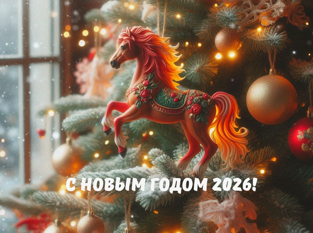 С наступающим Новым годом 2026 Лошади! Пусть этот год будет щедрым на успехи и победы, как быстрая и смелая Лошадь несёт в жизнь движение, вдохновение и счастье. Пусть каждый день будет наполнен смыслом, любовью и радостью!