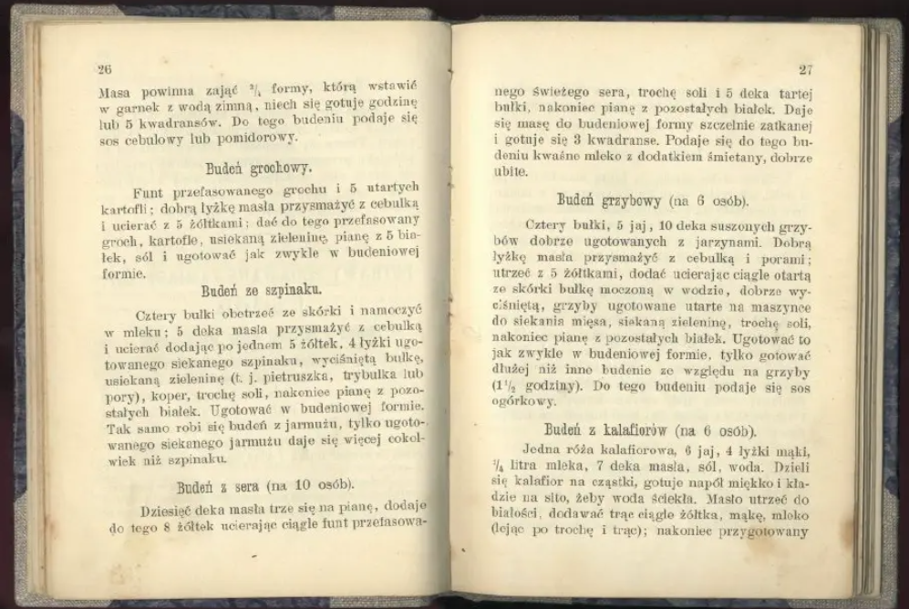 Кулинарные советы Тарнавских были удивительно современными: жена врача Ромуальда Тарнавская советовала избегать перца и паприки, заменять уксус лимонным соком или соком крыжовника, смородины или яблок. В частности, выше показаны рецепты пудингов: горохового, шпинатного, грибного. Отметим, в вегетареанской кухне тех времен активно использовали масло, творог и т.д.
