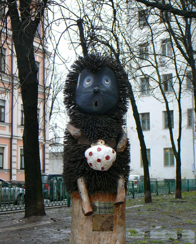 На пересечении с Рейтарской и Золотоворотской улицами установлены памятник "Защитникам границ Отечества всех поколений" и фигура героя известного мультфильма "Ежик в тумане".