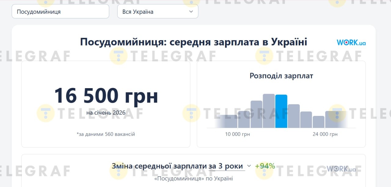 Зарплата посудомойщика в Украине в январе 2026, как изменилась за три года. Фото: Work.ua.