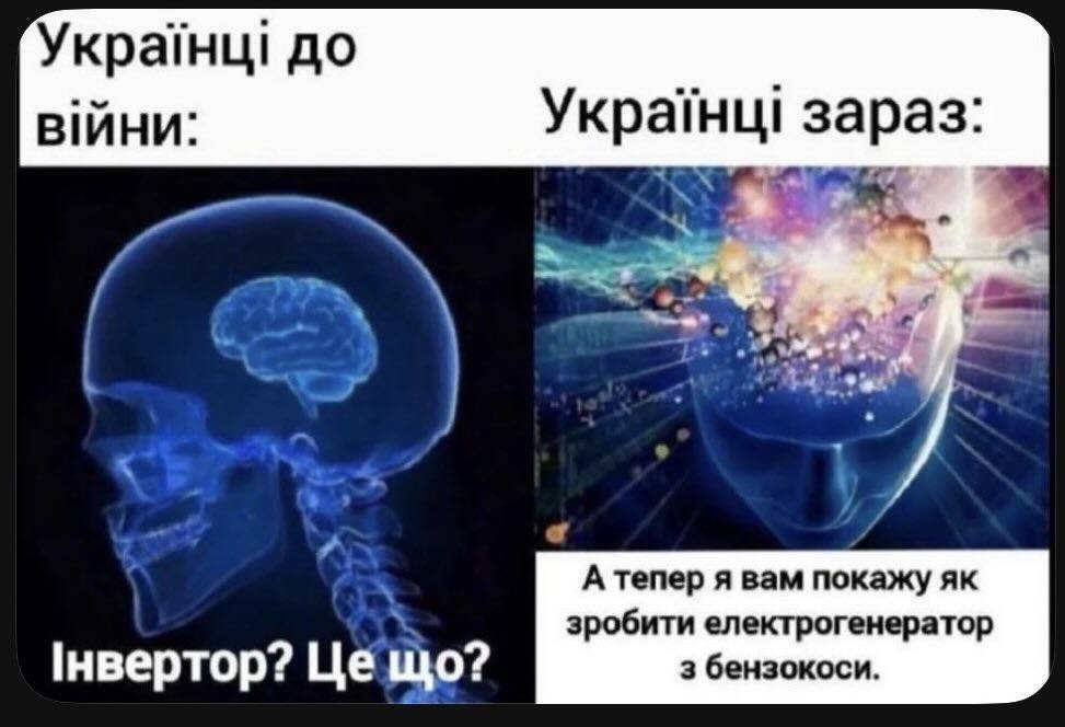 Украинцы приобрели новые навыки и знания, шутят в сети. До войны мало кто знал, что такое инвертор, а сейчас способны извлечь свет практически из чего угодно.