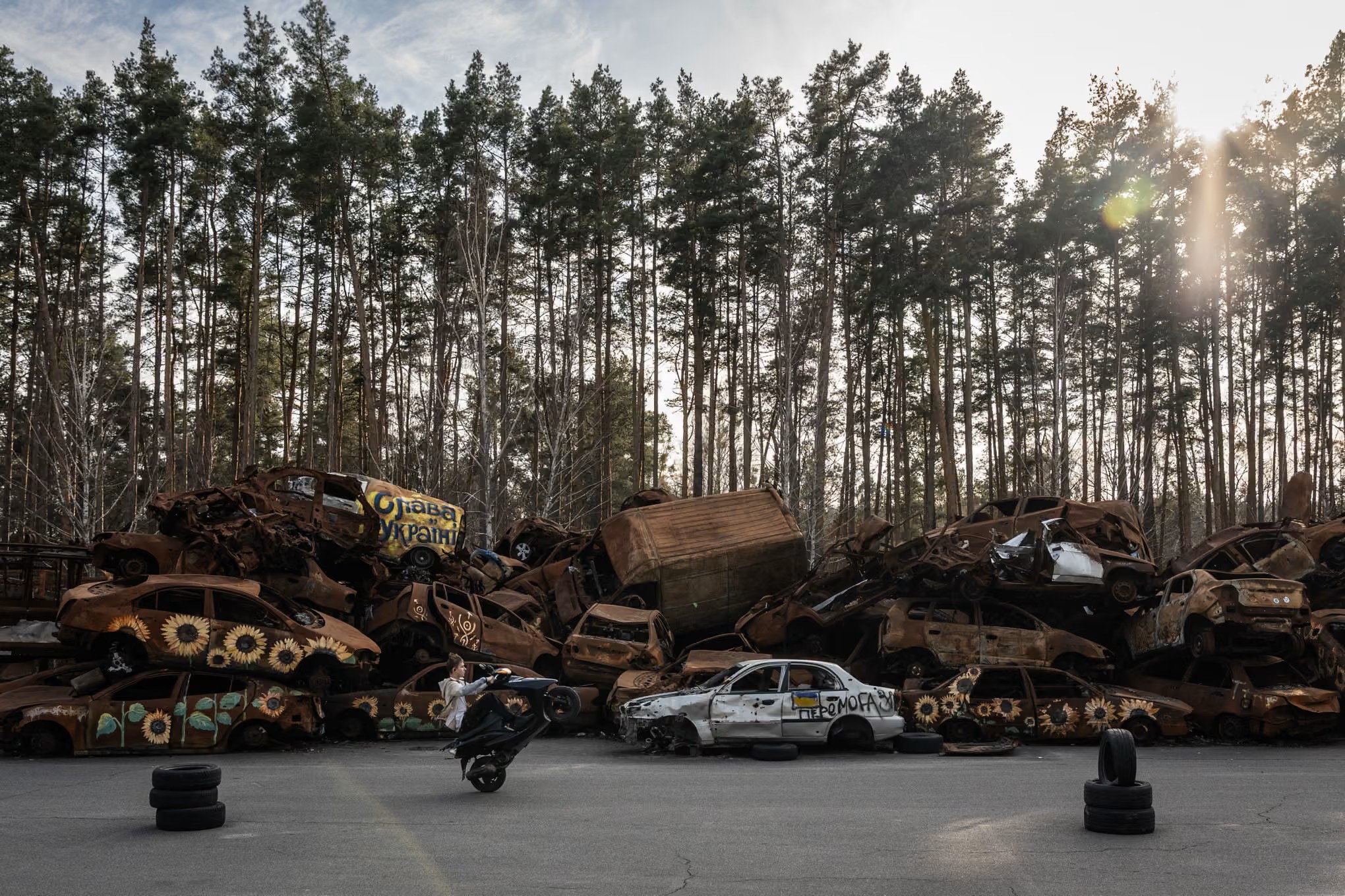 Сандро Маддалена в проекте Raised by war показывает подростков, чье детство формирует война. Один из кадров — парень, делающий трюк на скутере среди разрушенных машин в Ирпене. За этими фотографиями — более 1 400 дней войны и тысячи раненых и погибших украинских детей.