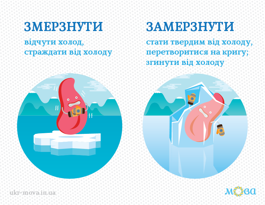 Интересно, что среди украинцев нередко вспыхивают споры: как правильно — "змерзнути" или "замерзнути". Языковед Александр Пономарев объяснил, что оба эти слова произошли от одного корня, однако их нельзя употреблять друг вместо друга. Замерзнути означает "стать твердым от холода, превратиться в лед; погибнуть от холода". В то время как змерзнути – это чувствовать холод, недостаток тепла.