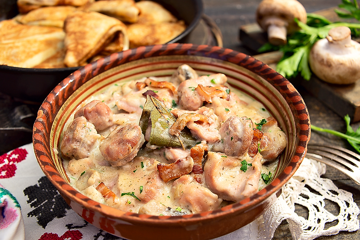 Традиционная мачанка отражает характер национальной кухни. В ее основе густая подлива из мяса или грибов, творога, сметаны и муки. Она идеально подходит к блинам, дерунам, вареникам и другим традиционным блюдам.