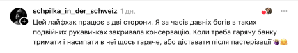 - Этот лайфхак работает в две стороны. Я во времена древних богов в таких двойных перчатках закрывала консервацию. Когда нужно было горячую банку держать и насыпать в нее что-нибудь горячее, или доставать после пастеризации.