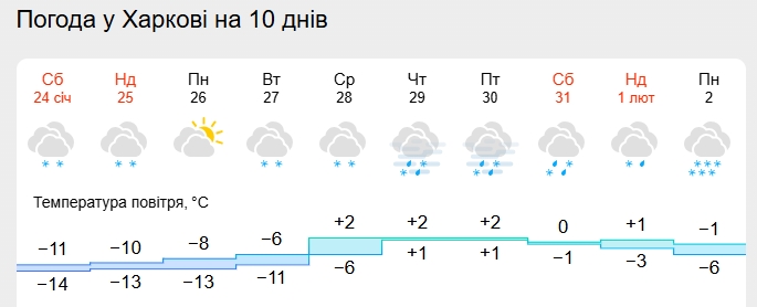 "Сначала теплее станет на юге и западе, потом по всей стране. Уже в последние дни января морозы совсем уйдут из Украины. Потепление принесет с собой осадки — сначала это будет снег, а примерно с 26 по 28 января во многих регионах он перейдет в дождь и туман. Потепление принесет с собой осадки — сначала будет снег, а примерно с 26 по 28 января во многих регионах он перейдет в дождь и туман. Возможен густой туман, поскольку теплый воздух будет двигаться над заснеженной землей", — рассказал Кибальчич.