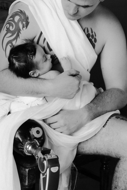 Несмотря на ранения, Сергей не сломался. Фото передает момент покоя – отец с нежностью смотрит на своего новорожденного сына. В этом кадре — вся суть "спокойствия среди конфликта", именно такой темы конкурса.